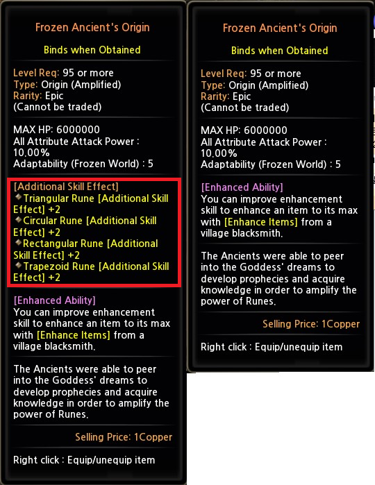 The following item should include the additional skill effect as we marked with red-box below, but it did not.